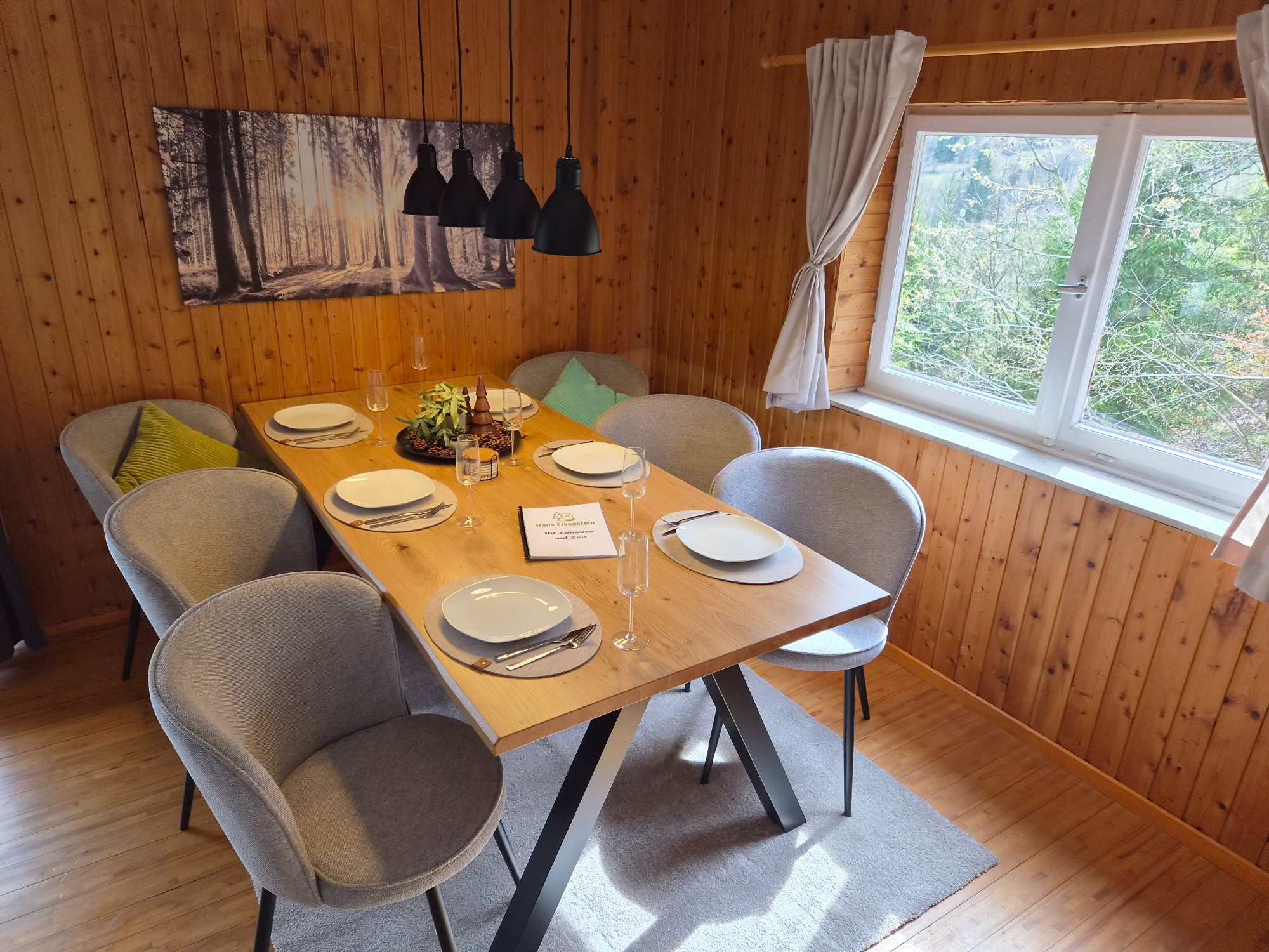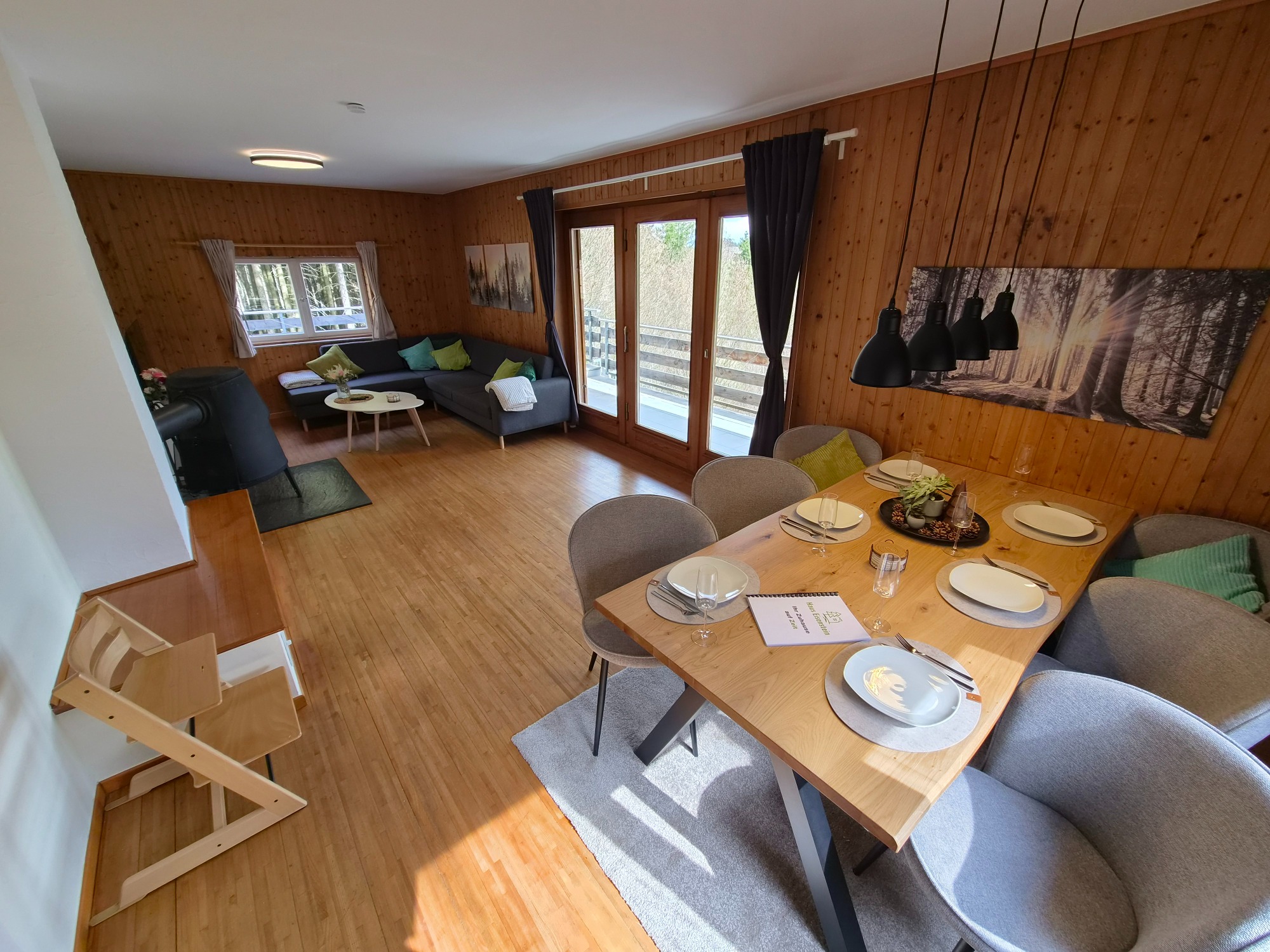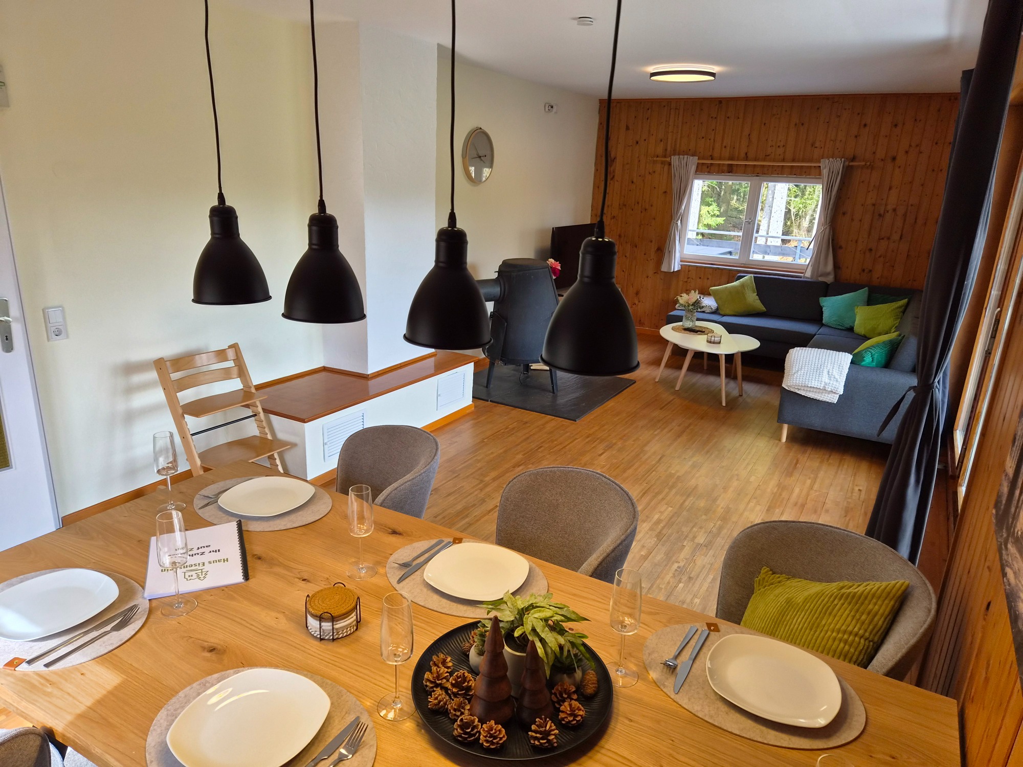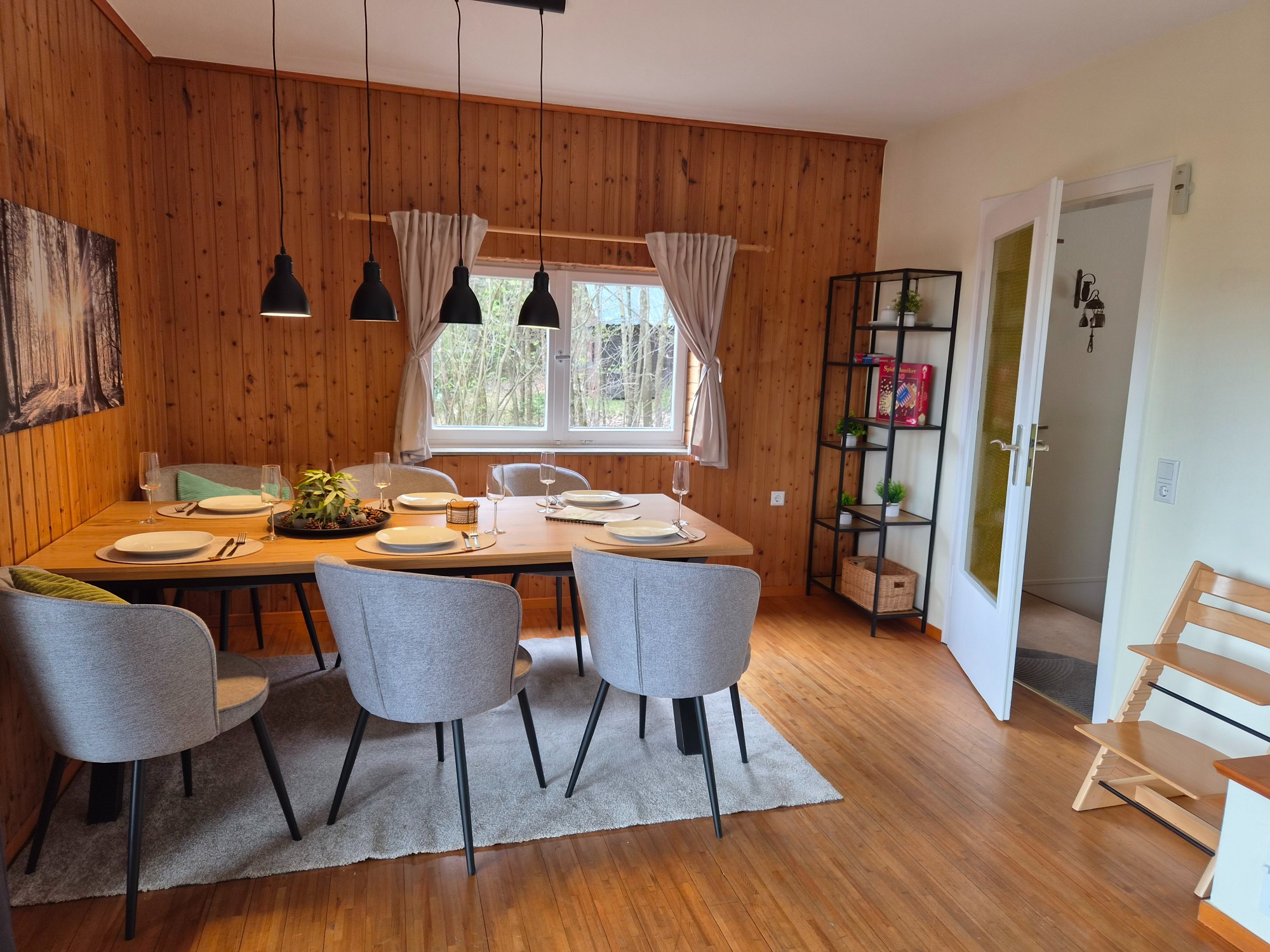 Der großzügige Esstisch bietet ausreichend Platz für gemeinsame Mahlzeiten oder einen geselligen Spieleabend. Für unsere kleinen Gäste steht ein Tripp Trapp Hochstuhl zur Verfügung.