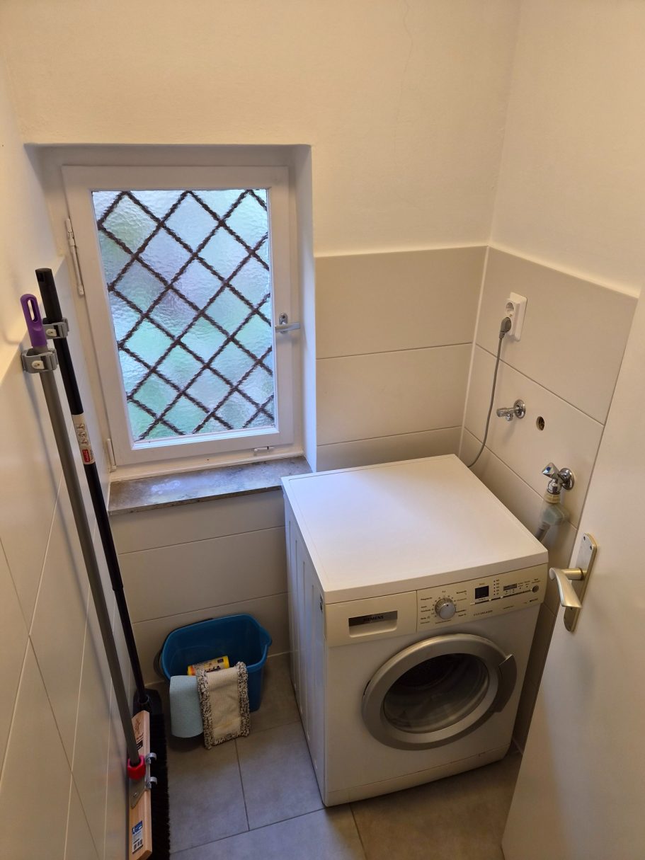 Im Hauswirtschaftsraum im Untergeschoss stehen Ihnen eine Waschmaschine sowie ein Wäscheständer zur Verfügung. Zudem finden Sie hier einen Besen, einen Wischer sowie einen Staubsauger, sodass Sie während Ihres Aufenthalts alles Nötige für die Reinigung und Pflege des Hauses griffbereit haben.